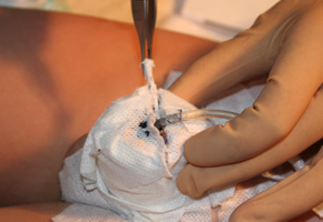 - En esta visita se retirará el vendaje cortándolo con tijeras y con un poco de suero se despega con facilidad, también se retira la sonda en este momento.