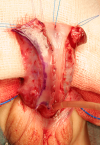 La aproximación ventral de los flaps mucosos (collar de Firlit) permite cubrir con mucosa la cara ventral subcoronal dando un aspecto estético similar al niño circuncidado.
