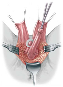 Panendoscopia y colocación de sonda Foley en vejiga y Fogarty en vagina. Permite conocer la distancia del canal común.