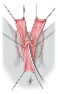 La uretra se incide en su parte media y se vuelve hacia atrás y suturada